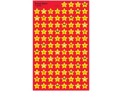 Smiling emoji star stickers appeal to all ages and are a wonderful way to motivate and reward achievement! Great on homework, incentive pads, charts and more, these stickers are nontoxic, acid-free and photo-safe. Pack includes 8 sheets of stickers in 8 designs, for a total of 800 stickers; each measures approximately 1/2".