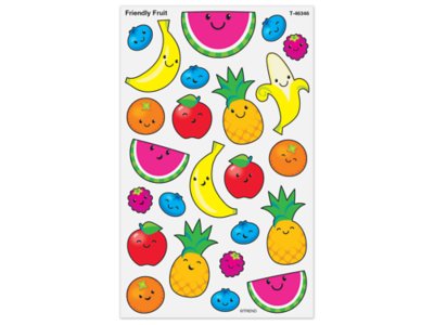 Reward children with stickers featuring super-silly fruit friends! Great for invitations, scrapbooking, announcements, creative storytelling and play, and more, these stickers are nontoxic, acid-free and photo-safe. Pack includes 8 sheets of stickers in 19 designs, for a total of 192 stickers; most measure 5/8" to 1".