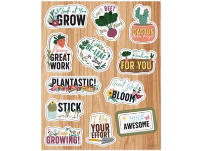 These colorful garden-themed stickers are perfect for motivating and rewarding students…and add a fun touch to notes, calendars and completed student work! The eye-catching motivational stickers help positivity bloom in the classroom with various messages of encouragement. Pack includes 6 sheets, for a total of 72 acid- and lignin-free stickers in 12 designs; largest stickers measure 3/4" x 2".