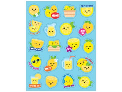These zesty stickers add a citrusy pop of fun to your classroom! Each lemon-themed sticker comes with a burst of fragrance that makes learning even more exciting. Perfect for grading papers, decorating assignments, celebrating achievements and more. Pack includes 6 sheets of stickers in 20 designs, for a total of 120 stickers; each measures approximately 1".