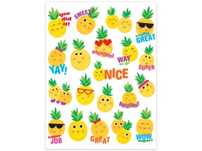 These colorful stickers feature super-silly pineapple characters and words of encouragement—plus a long-lasting scent that adds a fun touch to graded assignments, classroom crafts and rewards! Pack includes 80 pineapple-scented, self-adhesive stickers; each measures approximately 1".