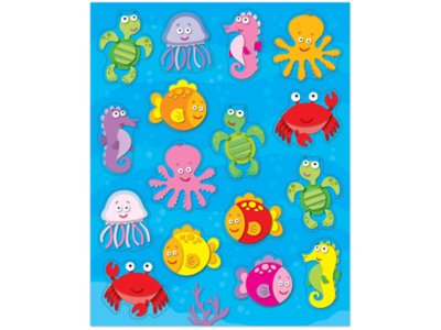 These fun, colorful stickers are perfect for motivating and rewarding students…featuring adorable sea creatures! Pack includes 6 sheets, for a total of 96 die-cut, acid- and lignin-free sea life stickers in various designs; each sticker sheet measures 4 1/2" x 5 5/8".