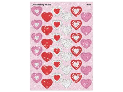 Shimmering heart stickers add pizzazz to name tags, invitations, scrapbooks and more—and are great as party favors, for storytelling and as awards, too! The stickers are nontoxic, acid-free and photo-safe. Pack includes 2 sheets of stickers in 6 designs, for a total of 72 stickers; each measures approximately 1/2".