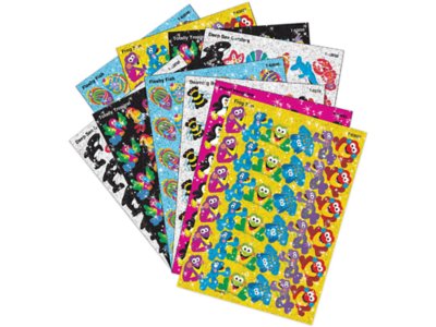 Cute, colorful, sparkly stickers add pizzazz to name tags, reports, invitations, scrapbooks, assignments, storytelling and more—they’re even great as party favors and awards! Plus, they’re nontoxic, acid-free and photo-safe. Pack includes 20 sheets of stickers in 37 designs, for a total of 656 stickers; each measures 5/8" to 1".