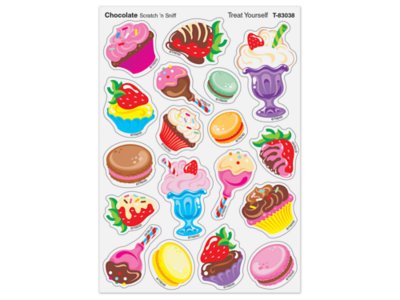 Our colorful chocolate-scented stickers are fun to collect and great for motivation and rewards! Scratch ’em and sniff ’em for a burst of fragrance that lasts for years of happy memories. Featuring more than a dozen designs that make it easy for you to customize your messages, the stickers are nontoxic, acid-free and safe to use on photos and in scrapbook albums. The scents do not contain nut oils. Pack includes 72 stickers in 18 designs; most stickers measure approximately 7/8".