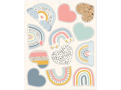 These colorful boho-style rainbow and heart stickers are perfect for motivating and rewarding students…and add a fun touch to notes, calendars and completed student work! The eye-catching motivational stickers give students a rainbow of encouragement. Pack includes 6 sheets, for a total of 72 acid- and lignin-free stickers in 12 designs; largest stickers measure 1 3/10" x 2".