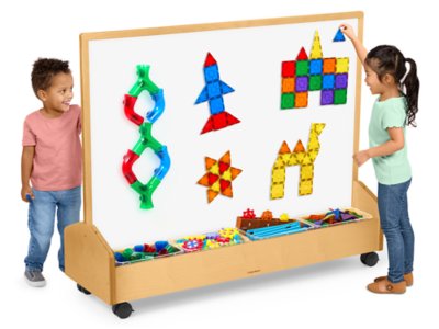 Create an instant activity station anywhere in the classroom—with a versatile, easy-to-move unit that features a huge magnetic write & wipe surface on both sides! Designed for several kids to work at the same time, the station has built-in storage compartments on bottom that are perfect alone or with our Clear-View Bins (sold separately)—great for keeping manipulatives, markers and other supplies organized and within reach on either side. Plus, the super-sturdy unit is stable enough to use as a room divider! Birch station has rounded corners for safety and includes 4 locking 3" casters for convenient mobility. Assembly required.