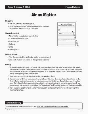 View Lesson Plan Air as Matter5th Grade