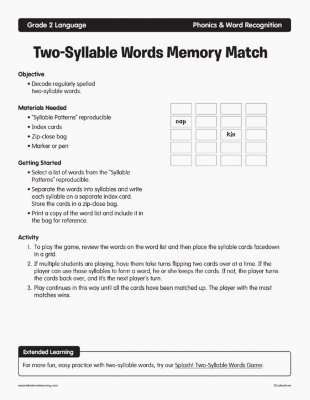 Objectives CCSS Reading: Foundational Skills RF.1.3b: Decode regularly spelled one-syllable words. RF.1.3c: Know final -e and common vowel team conventions for representing long vowel sounds. RF.2.3b: Know spelling-sound correspondences for additional common vowel teams. Materials Needed Chart paper, overhead projector or interactive whiteboard Long Vowel Words building board Long vowel picture cards and letter tiles Word Ladder activity pages Three-In-A-Row game components (game board, spinner and word list) Small scraps of paper or game markers (e.g., coins, chips, etc.) Classroom Pencils Paper clips Introduction Write the following words on chart paper: tap hop fin Ask a volunteer to read each word aloud. Point out that the vowel sound in each word is a short vowel (as in “apple,” “object” and “igloo”). Next, write an “e” at the end of each word to form the words “tape,” “hope” and “fine.” Tell students that this final -e (sometimes called a “magic e”) changes the vowel sound from short to long. View Lesson Plan Story Sequencing and Writing1st Grade - 2nd Grade