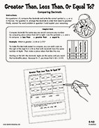 View worksheetDuring fifth grade, your child will learn to compare decimals to the thousandths place using the greater than (>), less than (<) and equal to (=) symbols, such as 0.392 > 0.329.